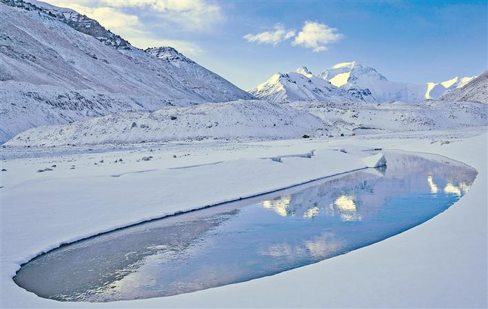 圖為珠峰下的“月牙灣”。新華社記者 普布扎西 攝