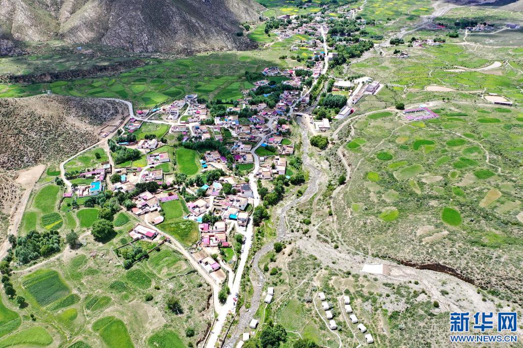 鳥(niǎo)瞰達(dá)東村景區(qū)(無(wú)人機(jī) 拍攝)。 新華社記者 普布扎西 攝