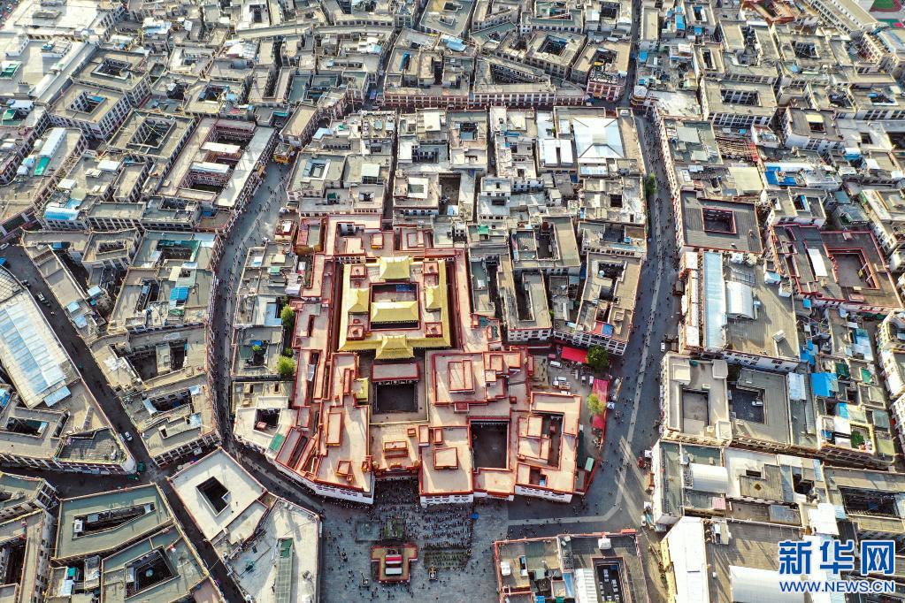 鳥(niǎo)瞰拉薩八廓街(2019年8月10日攝)。新華社記者 普布扎西攝
