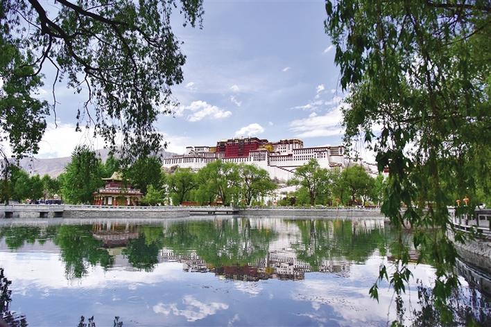 記者來(lái)到布達(dá)拉宮廣場(chǎng),看到有很多游客在湖邊拍照,湖面清澈得像一面鏡子,倒映著布達(dá)拉宮。這么美的畫(huà)面,小編也忍不住用相機(jī)記錄下來(lái)與大家分享。