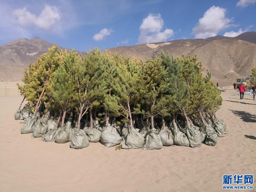 山南市江北“萬(wàn)人萬(wàn)畝”義務(wù)植樹(shù)造林所用的樹(shù)苗(2021年3月7日攝)。新華社發(fā)(資料照片)