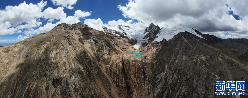 鳥(niǎo)瞰雅拉香布雪山腳下的冰川融水湖(6月4日攝,無(wú)人機(jī)照片)。新華社記者 洛卓嘉措 攝
