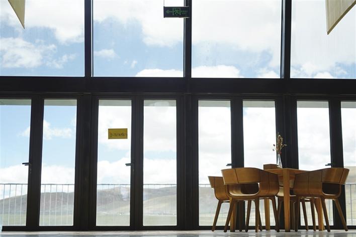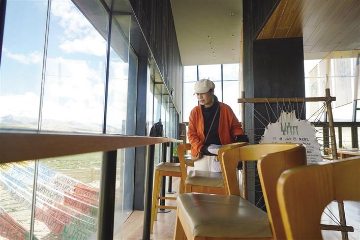 從正門進入,穿過牦牛文化空間走廊,便可到能夠以最佳視角欣賞念青唐古拉山的VR觀景臺。緊鄰觀景臺右側(cè),是一間擺放當?shù)匚膭?chuàng)產(chǎn)品、各類書籍的觀景咖啡廳。該咖啡廳的兩面墻體設計為超大落地窗,在此休息的游客可以邊品嘗咖啡,邊欣賞念青唐古拉山及拉多草原的美景。走進咖啡廳,記者看到不少在這里休息的游客都在低頭寫著什么,經(jīng)咖啡廳負責人介紹:“這些游客是在寫明信片,我們這里不僅提供餐飲,還提供印有本地風景的明信片,并同中國郵政合作,幫助游客按時將明信片寄到他們的親朋好友手中,讓游客們的旅途變得更有意義?!?/p>
