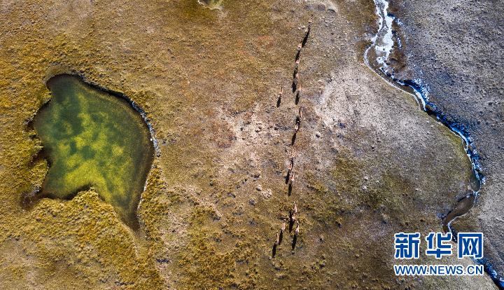 2019年10月19日,藏野驢在三江源地區(qū)活動(dòng)(無(wú)人機(jī)照片) 新華社記者 吳剛 攝