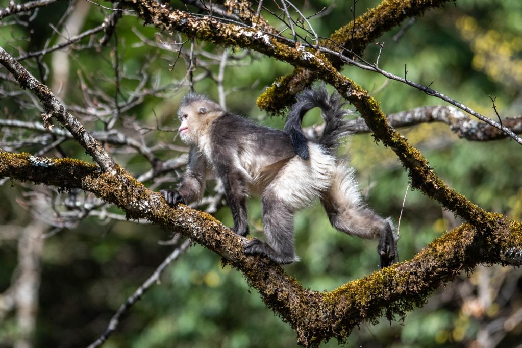 滇金絲猴分布在我國(guó)喜馬拉雅山南緣橫斷山系的云嶺山脈,金沙江、瀾滄江之間面積約2萬平方公里的區(qū)域內(nèi)。這些“雪山精靈”長(zhǎng)年生活在人跡罕至的高山地帶,堪稱世界上除人類以外棲息海拔最高的靈長(zhǎng)類動(dòng)物。