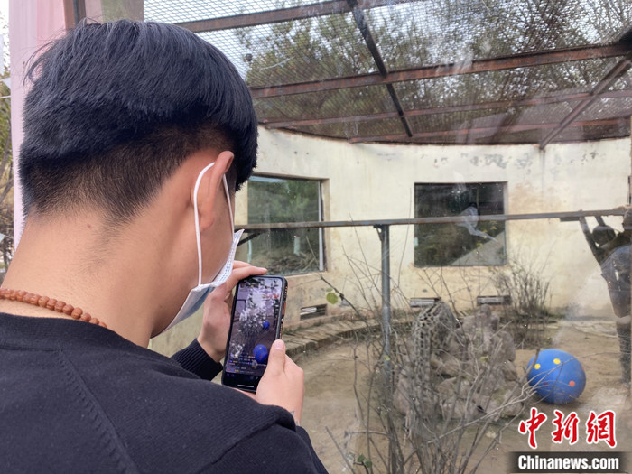 11月5日,史壽軍通過(guò)短視頻平臺(tái)直播,帶網(wǎng)友“云逛動(dòng)物園”。 中新社記者 李江寧 攝