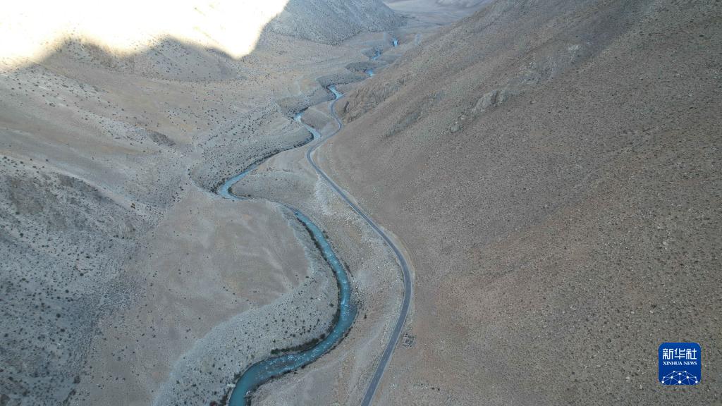 離開參木達村,沿扎嘎曲逆流而上行駛約20分鐘后,公路旁的扎嘎曲開始在峽谷中東西向蜿蜒而行,進入整條河流的最狹窄處。記者在S516省道29公里處停車航拍,只見公路與河流像兩條平行的曲線,時遠時近,向遠方延伸。