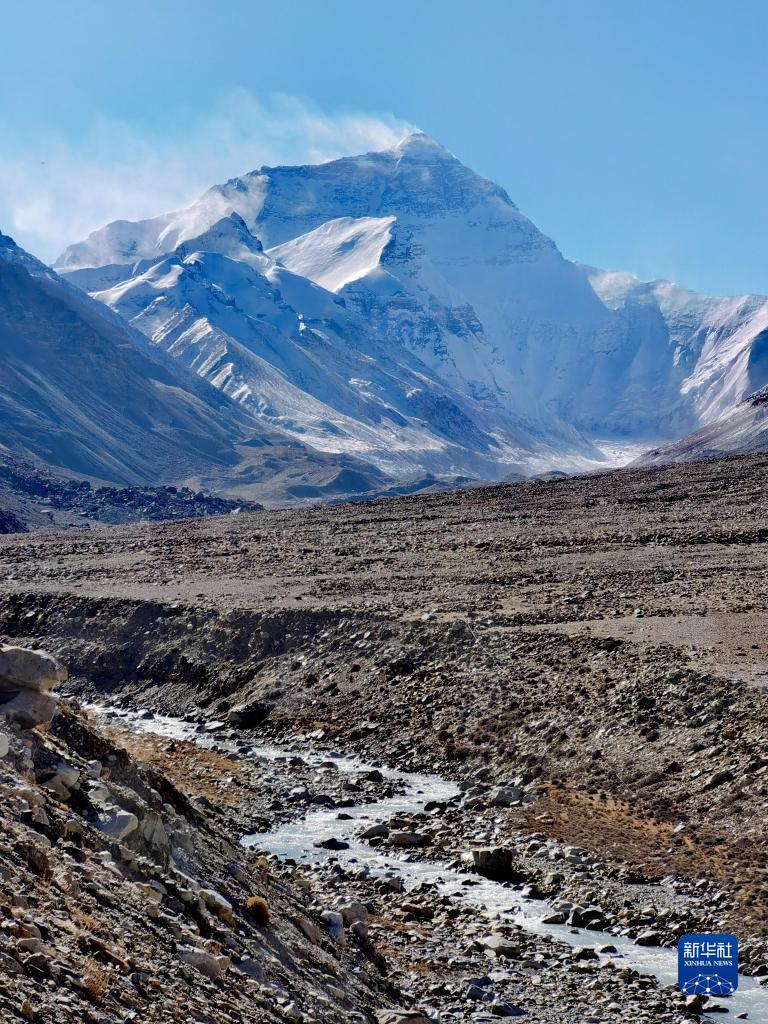 珠峰與扎嘎曲(10月27日攝)。新華社記者劉詩平攝