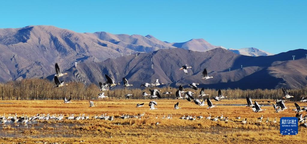 唐嘎鄉(xiāng)位于拉薩市達(dá)孜區(qū)東北部,這里每年冬季都會迎來黑頸鶴、斑頭雁、赤麻鴨等候鳥。這些在此越冬的“客人”和周邊的田園、濕地共同構(gòu)成高原冬季美景。