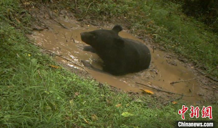 獨(dú)自洗澡的黑熊 寶興縣委宣傳部 供圖