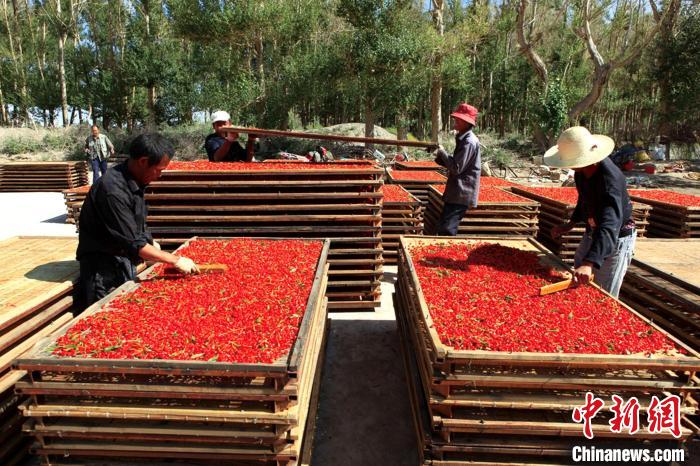 圖為都蘭縣枸杞采摘后進行晾曬。(資料圖) 都蘭縣委宣傳部 供圖