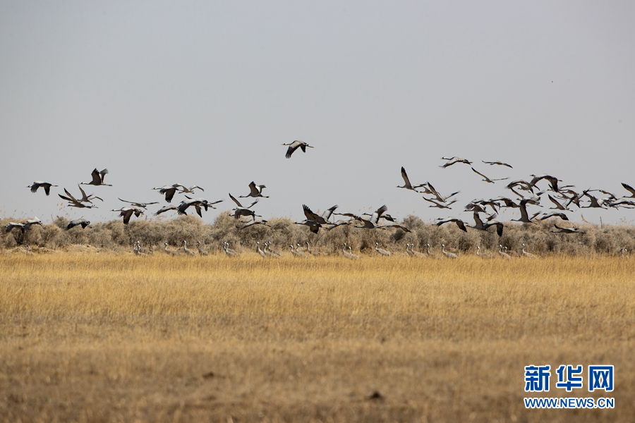 攝影愛好者在都蘭縣巴隆鄉(xiāng)境內(nèi)拍攝到的灰鶴。新華網(wǎng) 松太加 攝