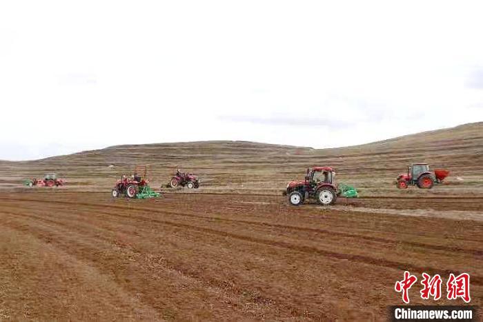 圖為同仁市黃乃亥鄉(xiāng)正在機(jī)械化種植黑青稞。 天津援青指揮部供圖