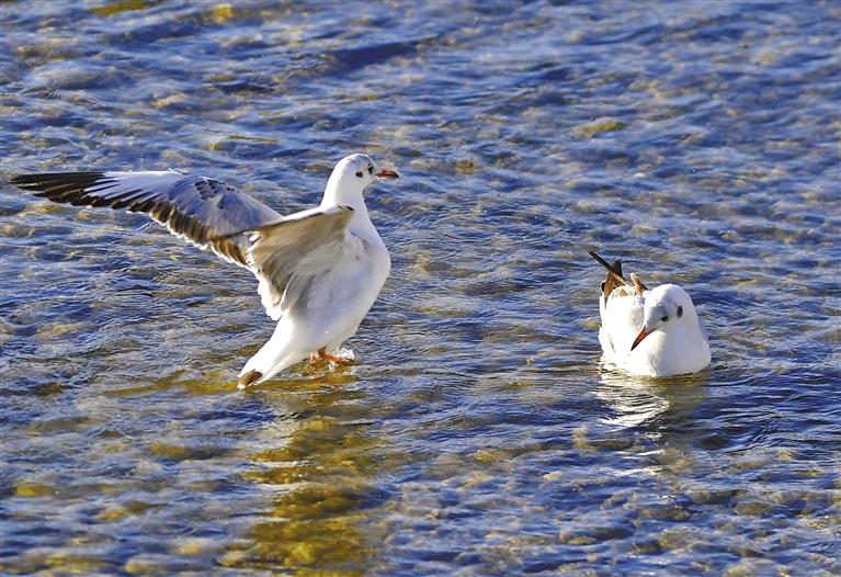 拉薩市拉魯濕地國家級自然保護區(qū)的水鳥(5月7日攝)。新華社記者 張汝鋒 攝