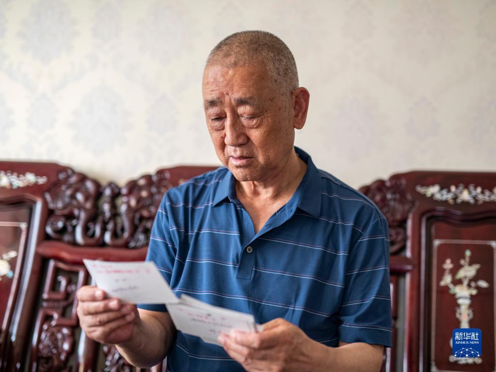在位于四川成都市的家中,已經(jīng)退休的李純祿在翻看老照片(6月3日攝)。新華社記者 唐文豪 攝