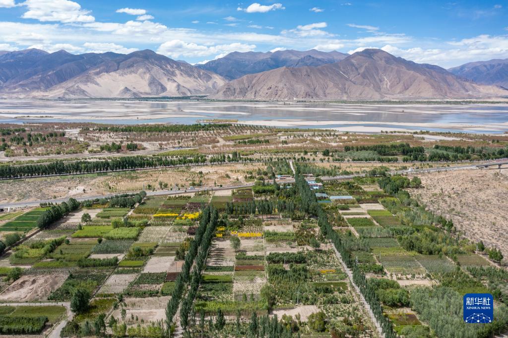 這是邊久經(jīng)營的位于西藏山南市扎囊縣的苗圃,這里曾經(jīng)是一片沙礫地(5月27日攝,無人機照片)。新華社記者 孫非 攝