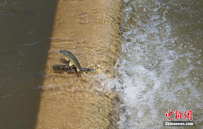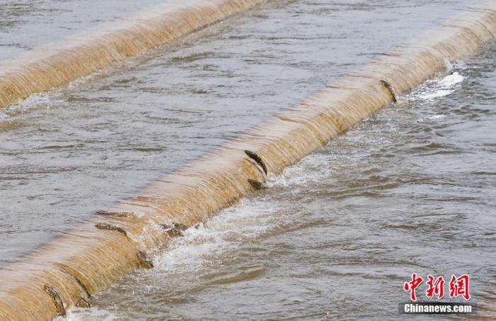 在泉吉河中,記者看到,河道內密密麻麻的湟魚正逐級跳躍專門為其修建的洄游通道。其中,還有一些被水流沖退的湟魚重新在河道內蓄勢待發(fā)。