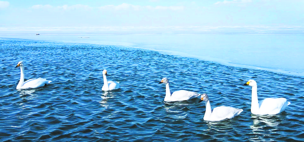 游弋在仙女灣的白天鵝。本版圖片均由剛察縣融媒體中心提供
