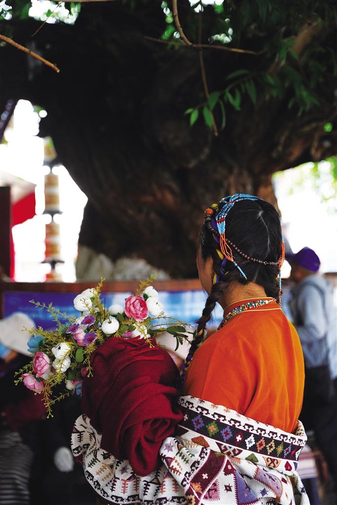 走在熙熙攘攘的八廓街,古樹已經(jīng)枝繁葉茂,陽光很難穿透密集的葉子,只能勉強擠出幾束光,碎落在古樹下乘涼的老人腳下。樹下拍照的游客自成一道風景,享受著高原夏日的美好時光。