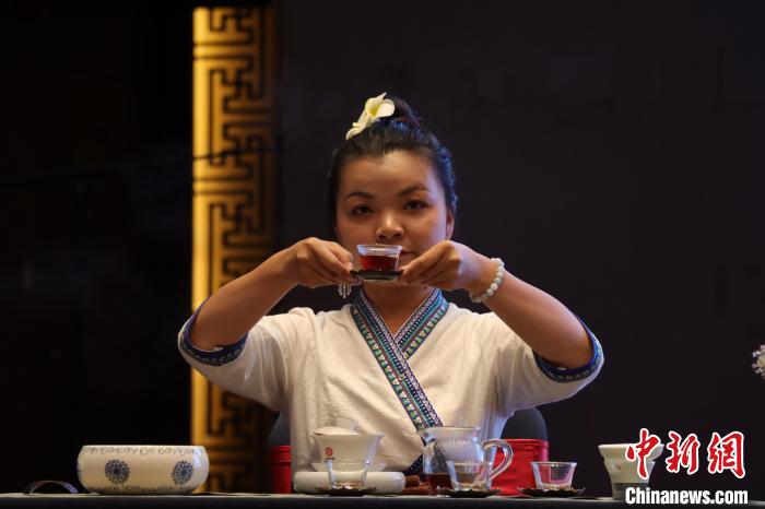 圖為國(guó)家高級(jí)茶藝師現(xiàn)場(chǎng)沖泡低氟普洱健康茶?!∶赚敋W珠 攝