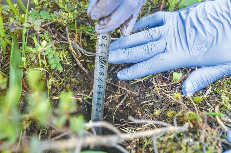前期的研究表明,海拔越高,增溫速率越明顯。王濤站起身,山對面的雪山下,海拔4500米的地方,觀測站還布設了同樣的增溫設施?!拔覀兙褪且闱宄@種增溫會對土壤碳庫產(chǎn)生什么影響,影響的機制是什么。”