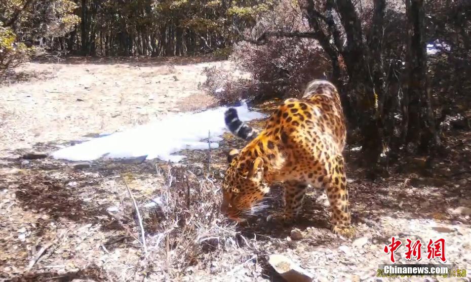 近日,木里縣博窩鄉(xiāng)野保監(jiān)測(cè)團(tuán)隊(duì),發(fā)布了一批木里縣部分野生動(dòng)物的照片和視頻。該團(tuán)隊(duì)自2017年成立以來,堅(jiān)持在博窩鄉(xiāng)開展紅外線相機(jī)監(jiān)測(cè)工作,現(xiàn)有23名成員,在野外安裝有185臺(tái)紅外相機(jī)。圖為金錢豹。 木里縣博窩鄉(xiāng)野保監(jiān)測(cè)團(tuán)隊(duì) 供圖