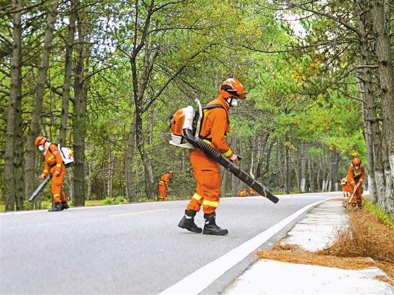 圖為林芝市森林消防支隊消防員在清理林緣可燃物。通訊員 李國燾 記者 旦增蘭澤 攝