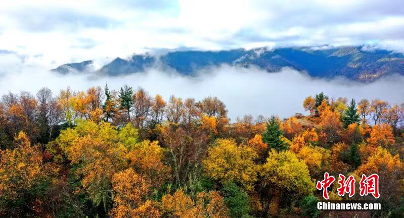 四川馬爾康賽馬山:云海、彩林美如畫