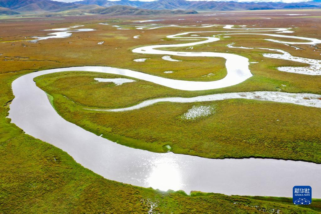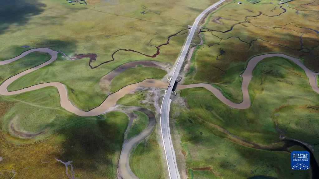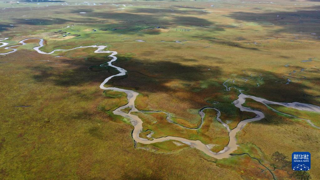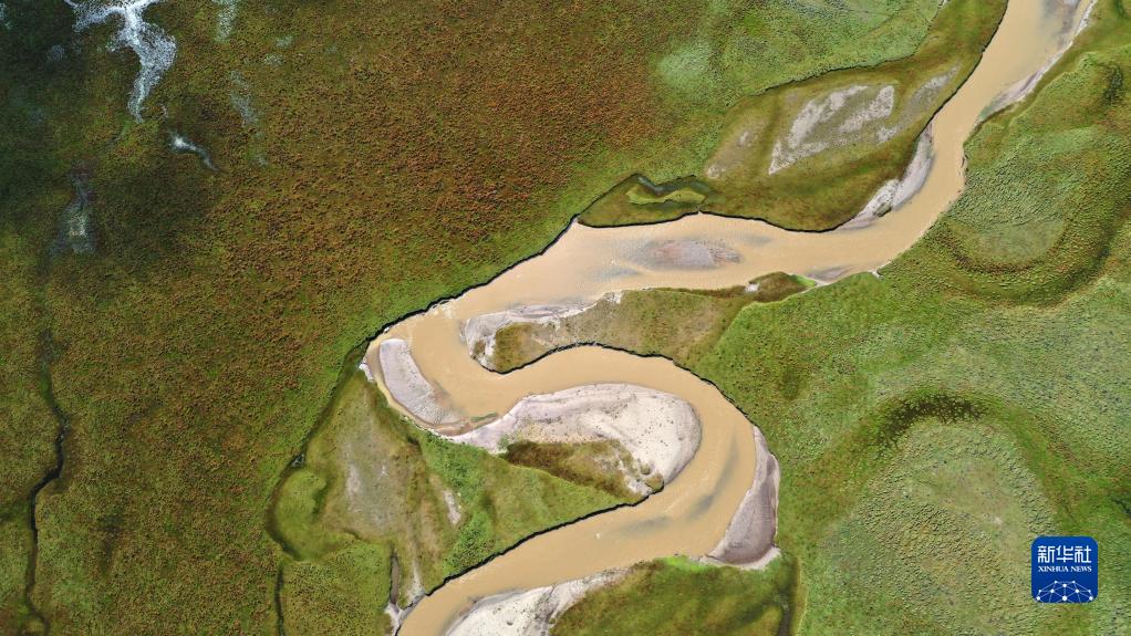 這是2022年9月21日拍攝的瑪曲縣阿萬倉濕地(無人機照片)。新華社記者 陳斌 攝