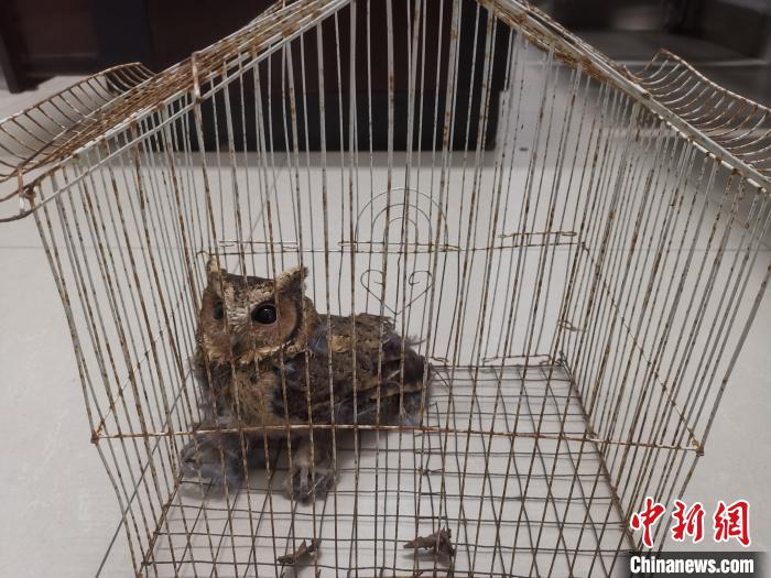 圖為受到救助的領(lǐng)角鸮?!∥麟p版納邊境管理支隊(duì)供圖