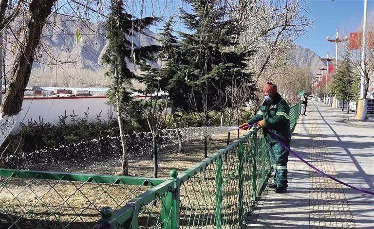 潔達(dá)園林公司副總經(jīng)理次仁平措介紹:“近日,我們的工作人員已開始對城區(qū)綠化植被、行道樹和公園苗木進行澆灌。此次冬季灌溉工作,主要采取人工噴灑及車輛澆灌相結(jié)合的方式,將解決大型噴灑設(shè)備無法全面澆灌的問題。”