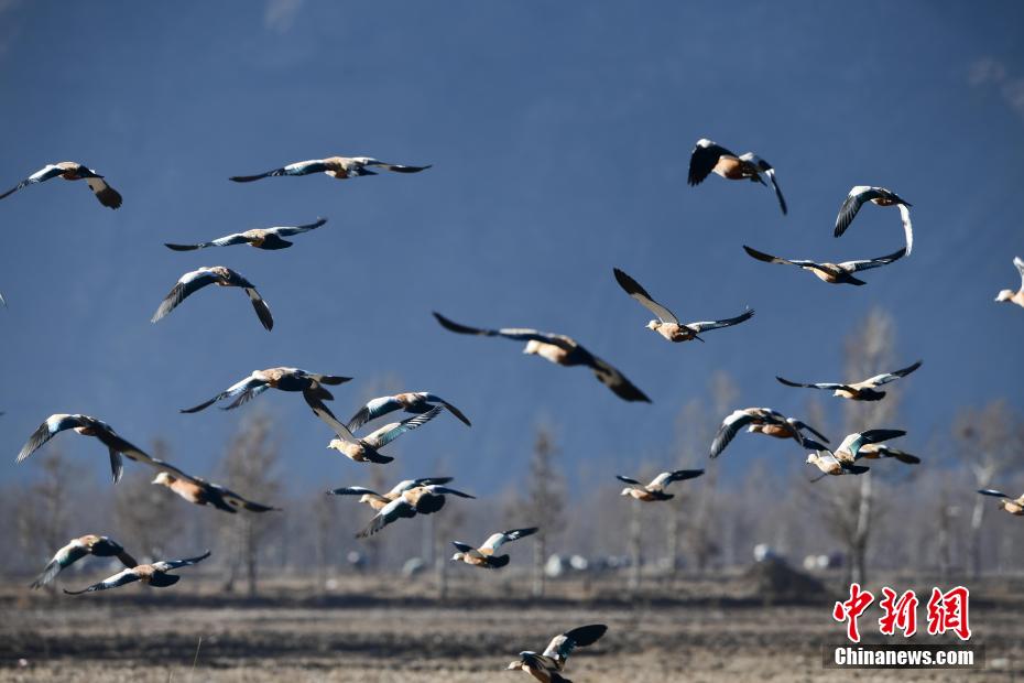 近年來,拉薩水系治理工程的實(shí)施,讓拉薩河周邊環(huán)境變得更好。每年10月中下旬,來拉薩越冬的候鳥不斷增多,在拉薩河畔處處都能看見斑頭雁、紅嘴鷗、黃麻鴨等鳥類的身影。據(jù)悉,目前,拉薩河城區(qū)段形成了3公里長的湖面水城,水城面積達(dá)1258畝,平均水深2.5米,蓄水量約105萬立方米,不僅增加了空氣濕度、含氧量,完善了城市防洪體系,還提高了地下水位,鳥類種群數(shù)量增加。圖為一群黃麻鴨在拉薩河畔的農(nóng)田上飛翔。 貢嘎來松 攝