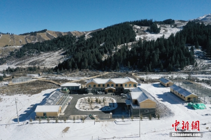 圖為1月18日,航拍青海省祁連山國家公園野生動物救護繁育站。(無人機照片) 中新社記者 馬銘言 攝