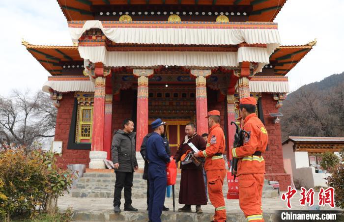 在寺廟宣傳防火注意事項?!∥骼@拉翁 攝