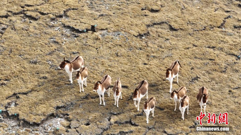 高原初春,馬鹿、藏野驢、藏狐等野生動(dòng)物在祁連山國家公園青海片區(qū)天峻縣境內(nèi)草場(chǎng)上覓食、棲息,悠閑自在。青海省海西蒙古族藏族自治州天峻縣大部地處祁連山國家公園青海片區(qū),近年來,該縣開展生態(tài)環(huán)境綜合治理,生態(tài)環(huán)境持續(xù)改善,珍稀野生動(dòng)物種群數(shù)量不斷增加。圖為航拍成群的藏野驢在天峻縣草場(chǎng)上覓食棲息。