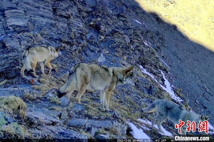 紅外線相機拍到的狼群?!⌒慢埧h林業(yè)和草原局供圖