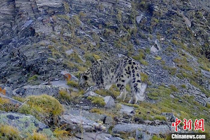 紅外線相機拍到的國家一級保護動物雪豹活動影像?!⌒慢埧h林業(yè)和草原局供圖