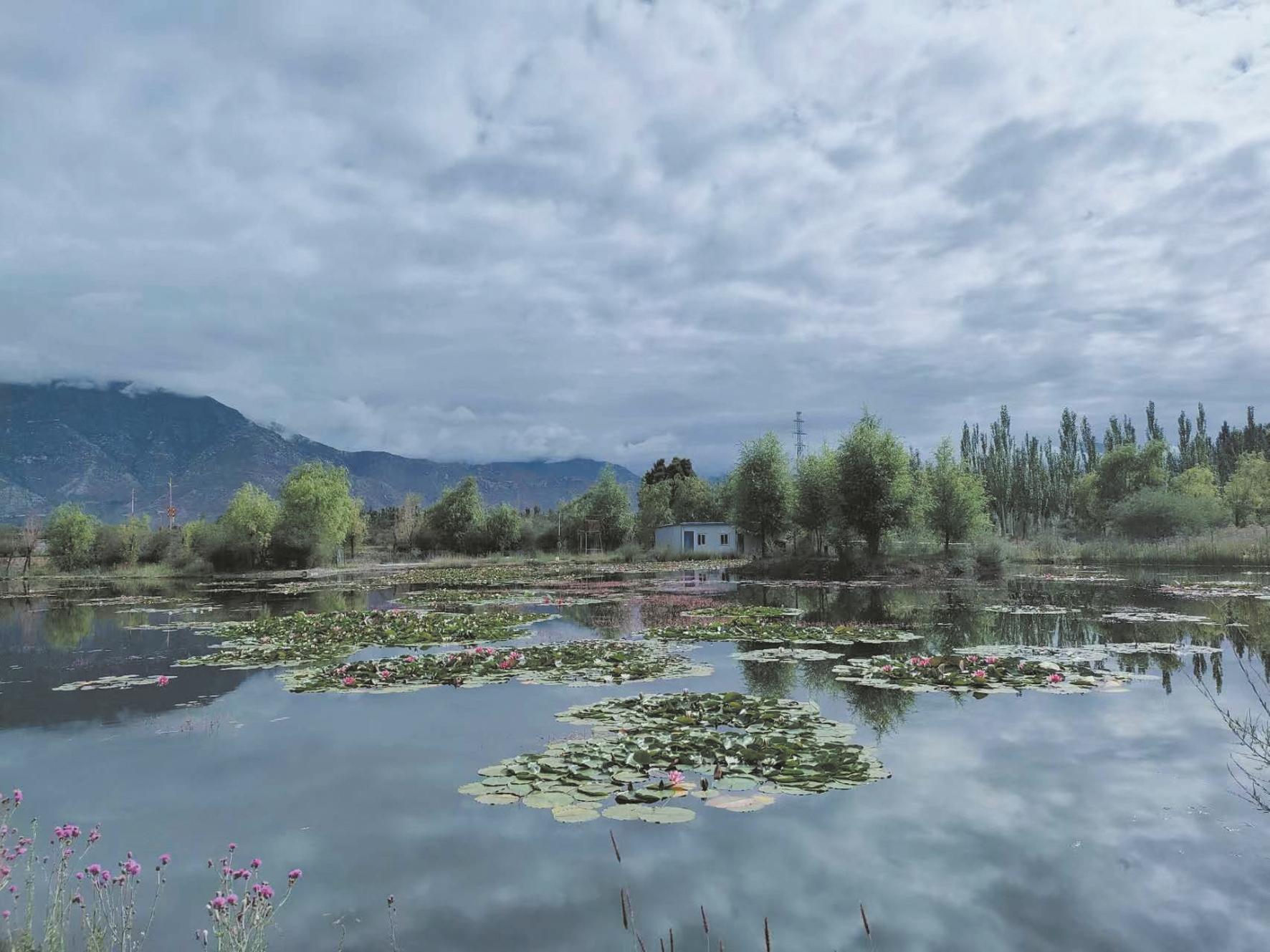 經(jīng)過反復(fù)試驗(yàn),王興邦從全國各地引進(jìn)的蓮花種苗逐漸適應(yīng)高原環(huán)境,從盆里移栽到池塘后,成活率達(dá)到90%以上。2019年,在拉薩高新區(qū)管委會(huì)的支持下,王興邦又獨(dú)自一人到拉薩高新區(qū)濕地公園內(nèi)種植蓮花。據(jù)王興邦回憶,那時(shí)的濕地公園僅是一片兩三百畝地的灘涂地,環(huán)境臟亂差,無人管理。夏季漲水后,形成高低不平的洼地,冬季來臨,土壤裸露。