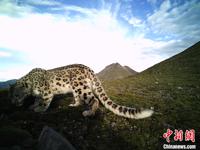圖為7月16日,西藏拉薩市堆龍德慶區(qū)“乃朗谷雪豹重要棲息地”內紅外線相機拍攝到的雪豹。 中新社發(fā) 山水自然保護中心 供圖