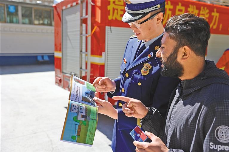 活動向入境外籍游客和商人發(fā)放了中文、英文、藏文三種語言的消防宣傳資料,用英語向外籍游客和商人講解、演示滅火器材使用方法、常見火災預防措施、火場逃生和急救常識等,并組織干粉滅火器實操、液化石油氣火災處置和疏散逃生演練。