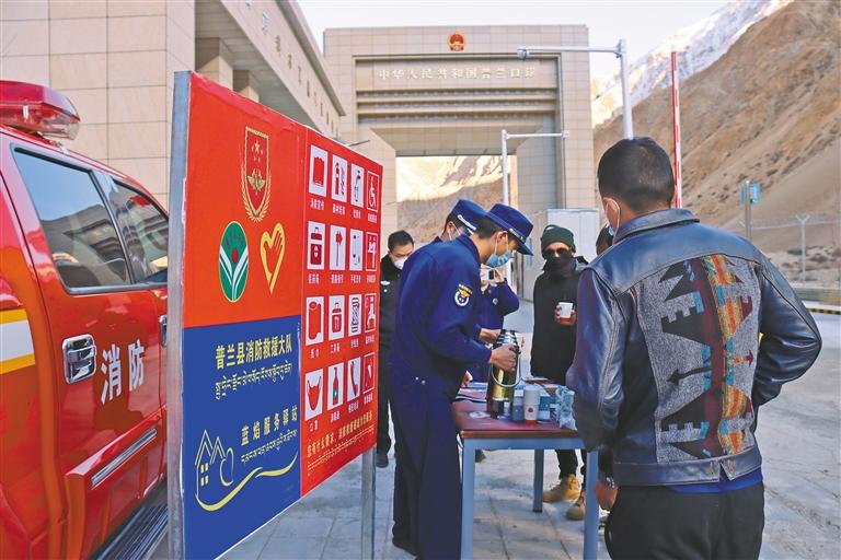 為進一步提高入境外籍游客和商人的消防安全意識,展示可信、可愛、可敬的良好消防形象,連日來,西藏消防救援總隊相繼在日喀則市吉隆口岸、樟木口岸,阿里地區(qū)普蘭口岸設立“雪域藍焰”服務驛站,開展“三語”(中文、英文、藏文)消防安全宣傳活動,為繁榮“口岸經(jīng)濟”、推進固邊興邊富民工作提供堅實的安全保障。