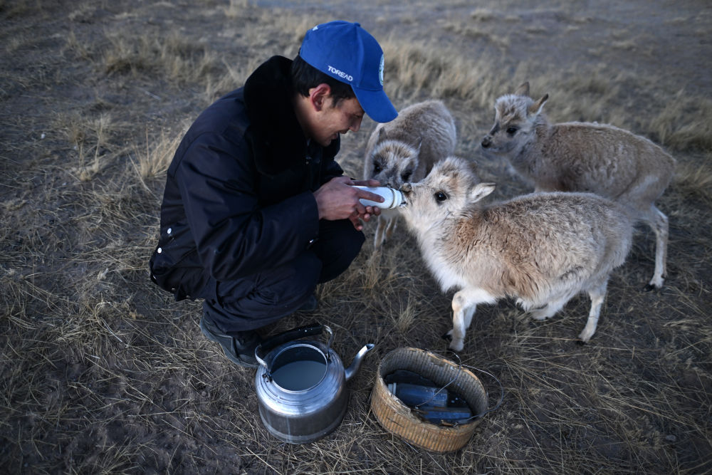 寒冬時節(jié),在青海省三江源國家公園管理局長江源園區(qū)可可西里管理處索南達杰保護站,3只被救助的藏羚羊幼仔在巡山隊員的呵護下,目前健康狀況良好,不久將接受野化訓練。
