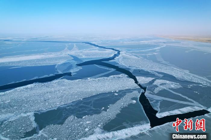 圖為航拍青海湖冰面裂縫。薛蒂 攝