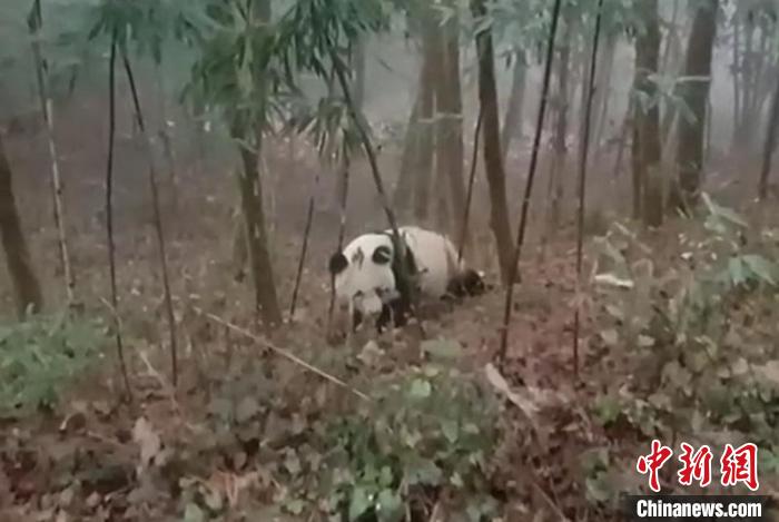 四川寶興:村民偶遇野生大熊貓在林中活動