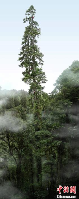 中國(guó)巨樹(shù)科考隊(duì)發(fā)布在西藏察隅縣發(fā)現(xiàn)的云南黃果冷杉的準(zhǔn)確高度為83.4米?!耙靶灾袊?guó)”工作室供圖