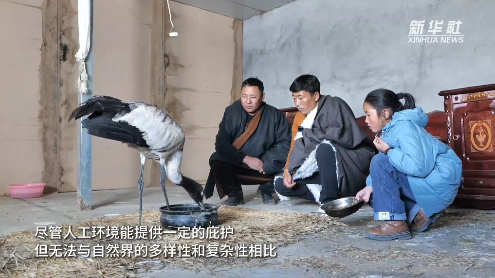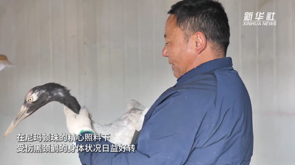 黑頸鶴是一種大型涉禽,依賴廣闊的天空和豐饒的濕地生存。盡管人工環(huán)境能提供一定的庇護(hù),但無法與自然界的多樣性和復(fù)雜性相比。在尼瑪頓珠的精心照料下,受傷黑頸鶴的身體狀況日益改善。隨著遷徙季節(jié)的臨近,尼瑪頓珠決定將其放回自然棲息地。