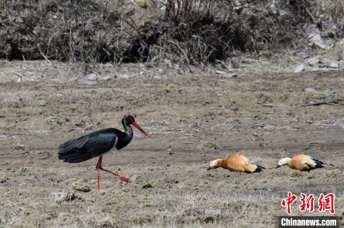 圖為祁連山國家公園青海片區(qū)管護員拍攝到的黑鸛。祁連山國家公園青海省管理局供圖