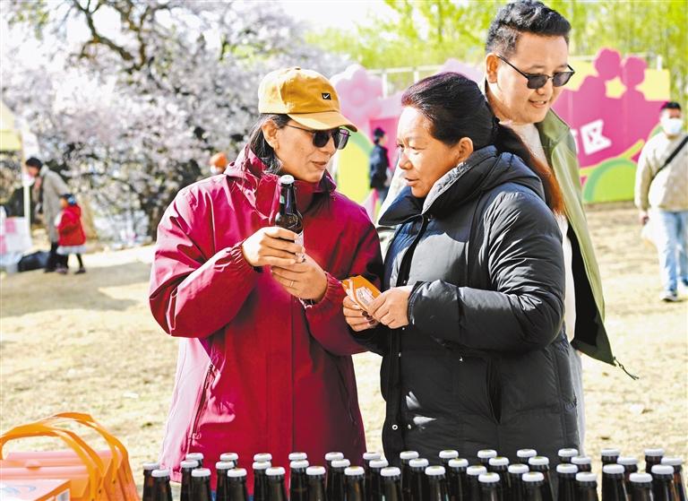 游客在活動(dòng)現(xiàn)場(chǎng)的集市上選購(gòu)特色商品。記者 王敏 攝
