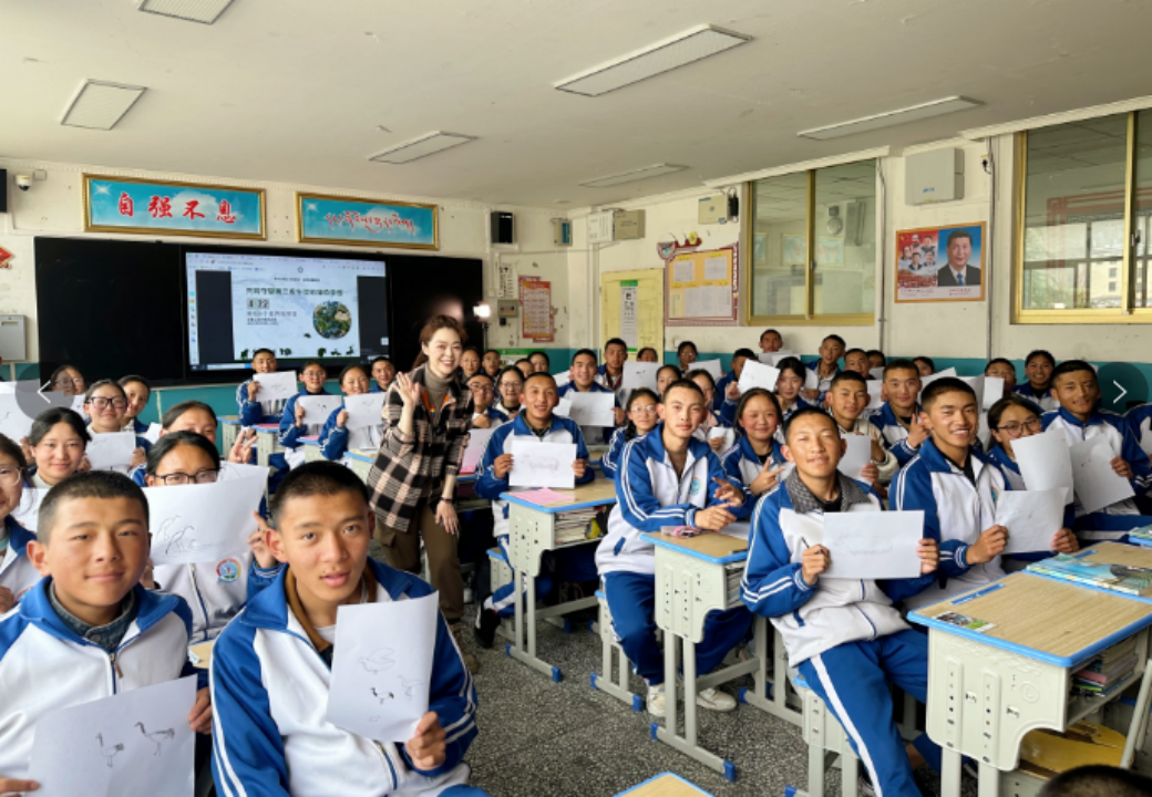 圖為“喜馬拉雅生靈的朋友”自然影像聯(lián)盟在西藏拉薩那曲第二高級(jí)中學(xué)開展自然教育活動(dòng)。