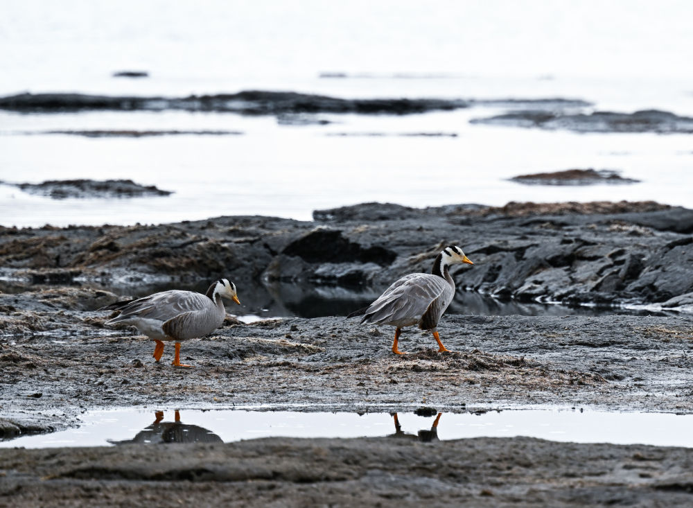 這是2024年4月11日在青海湖拍攝的斑頭雁。新華社記者 張龍 攝